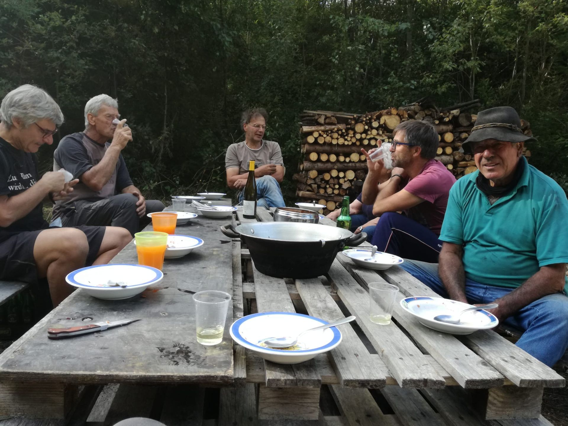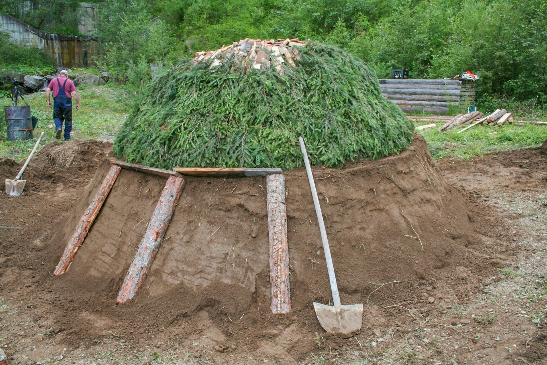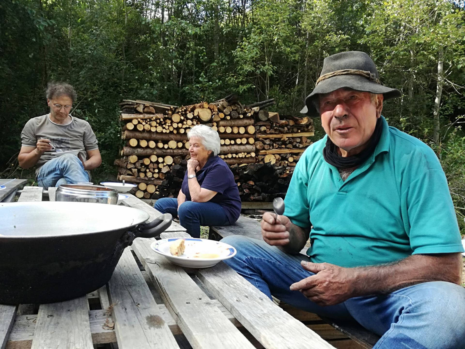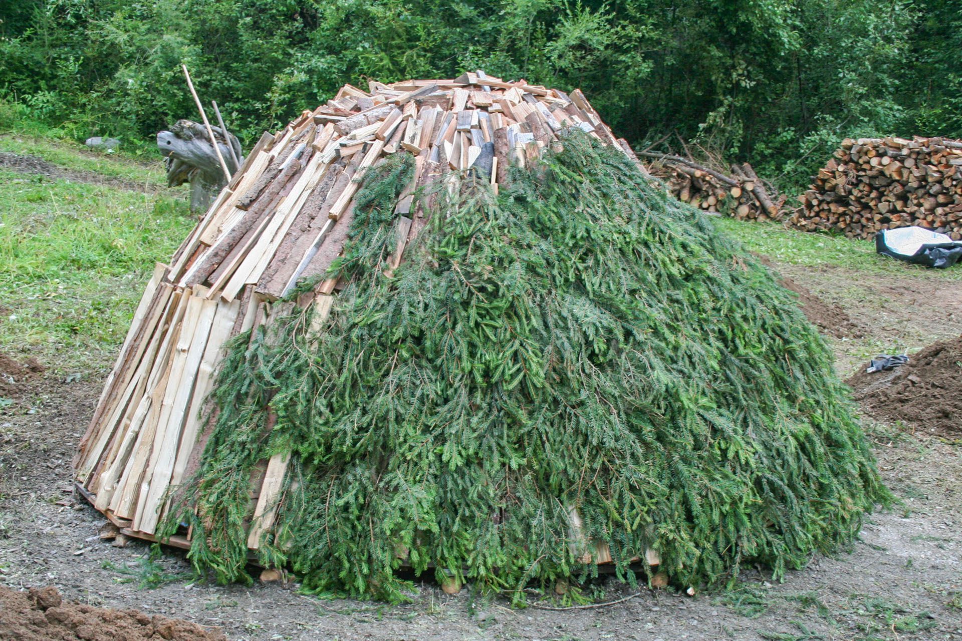 Der Geschichtsverein Ahrntal hat sich zum Ziel gesetzt einen Kohlemeiler nach historischem Vorbild aufzubauen und die Arbeit des Köhlers wiederzubeleben. Mit Hilfe von Ludwig Hutter, einem Köhler aus Bayern und den Mitgliedern des Vereins wurde dieses Vorhaben im August 2020 umgesetzt. Von Köhler Ludwig bekamen wir in einem ersten Treffen viel Information und eine lange Liste mit Materialien, die für die Errichtung des Kohlemeilers notwendig sind. 10 m³ trockenes Brennholz, ein Meter lang, oberarmdick gespalten, einen Kipper mit Tax (=grüne Fichtenzweige), 7 m³ Erde, zusätzlich Bretter und Schwarten, längere und kürzere, dickere und dünnere Stämme und dazu viel Werkzeug für die einzelnen Phasen der Errichtung des Meilers, eine einigermaßen angenehme Unterkunft für die kurzen Schlafpausen in der Nacht, eine Zuleitung fürs benötigte Wasser und ein Stromaggregat für eventuelle Notfälle. Der Geschichtsverein klopfte an viele Türen, fand überall offenen Ohren und so stand zum vereinbarten Termin alles zur Verfügung. Ludwig aus Bad Kohlgrub hatte mit „Reiner“ Unterstützung aus dem Elsass mitgebracht und gemeinsam wurde der Meiler aus heimischen Fichten- und Lärchenholz innerhalb von 2 Tagen aufgebaut.
