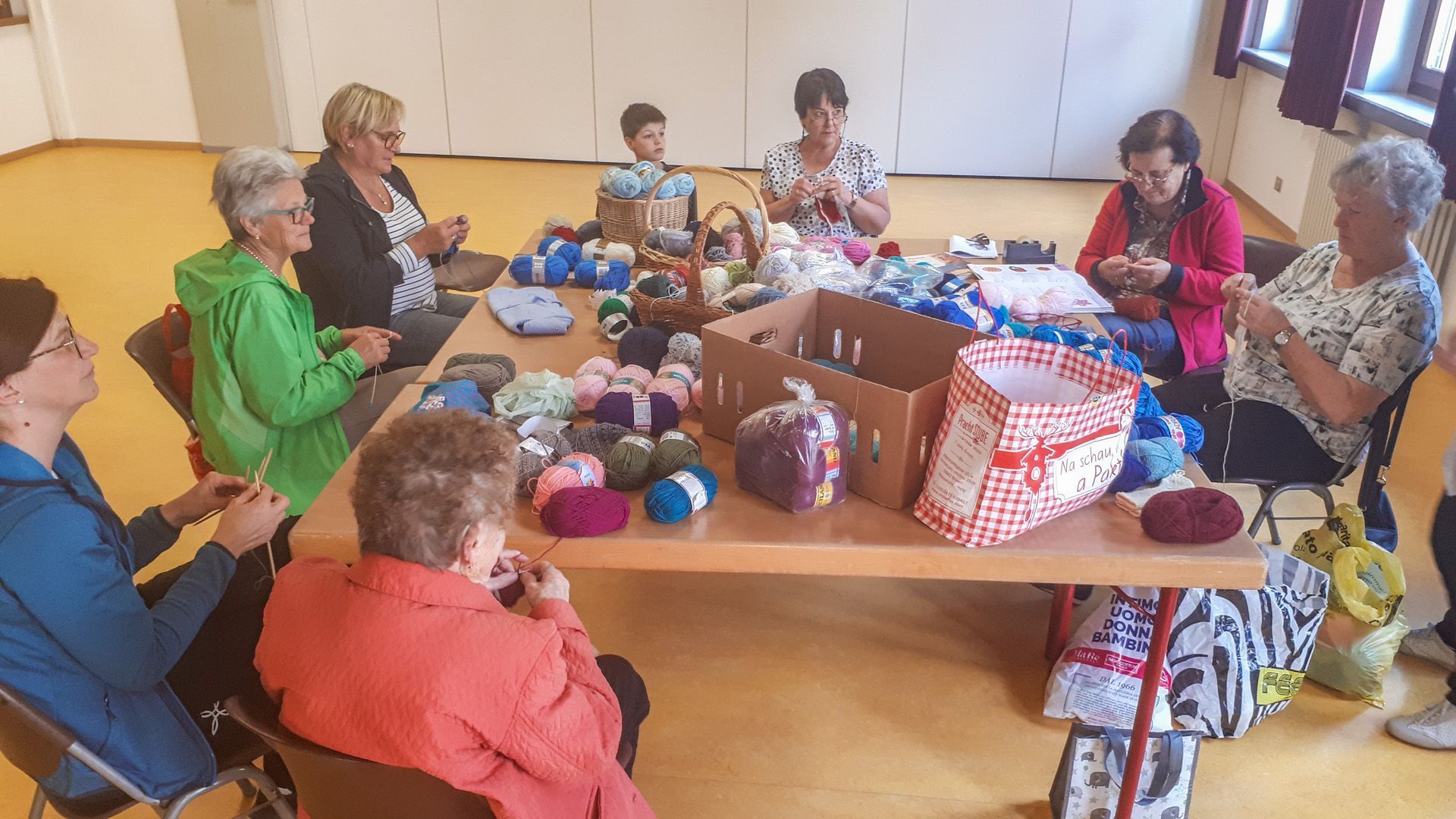 Sobald wir viele Jäcklein, Handschuhe, Kinderpullis, Deckchen usw. fertiggestellt hatten, luden wir Elsa Wolfsgruber von „Kinder in Not“ zu einer Marende ein.