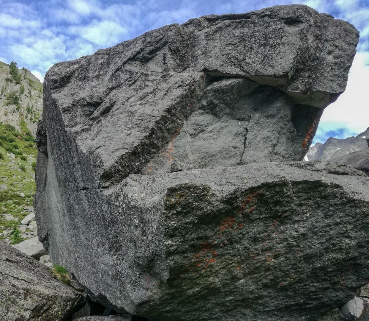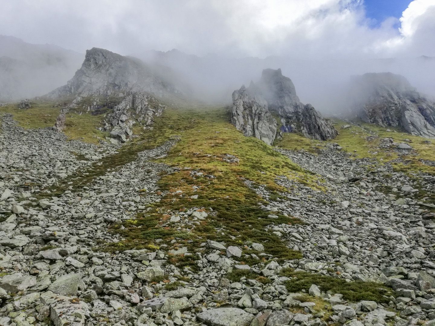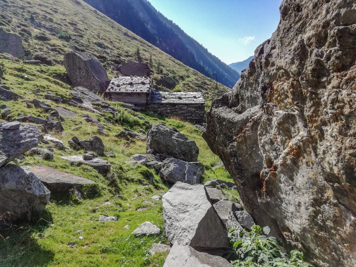 Vom Parkplatz am Mitterbach überschreiten wir die Brücke und gehen in wenigen Kehren, vorbei an der Riesa Alm 1442m taleinwärts auf der Forststraße zur Mitterbach Alm, die sich am Ende des Waldes an der orographischen linken Talseite befindet. Entlang der Almwiesen steigen wir über mäßig steilere Höhenstufen im steinigen Gelände und gelangen zu den Oberhütten 1883m. Im Schutze der riesigen Felsblöcke schmiegen sich die verlassenen Hütten in den Hang. Sie sind stumme Zeugen längst vergangener Almbewirtschaftung. Hier scheint die Zeit stillzustehen, wenn nicht ab und zu Felsen donnernd talwärts stürzen. Stets im Blickfeld haben wir die formschönen Hornspitzen vor uns während wir weiter zum oberen Talboden wandern. Für trittsichere Wanderer lohnt sich der Aufstieg zum Stabeler Höhenweg 24a. Über die steile, lockere Gesteinsschutthalde kann man die Gelenkscharte 2724m erreichen und zur Göge absteigen. Zwischen Felsblöcken, Mauerresten ehemaliger Stallungen vorbei biegt der Steig links ab. Serpentinenartig gewinnt man schnell an Höhe, überquert das Rinnsal, die gesicherten Stellen und gelangt über den kargen Geländerücken “In der Haspel” auf den Höhenweg 2450m. Steil und rippenartig schneidet sich rückblickend das Tal in die großartige Landschaft, wo einst ein fürchterlicher Drachen gewütet haben soll.